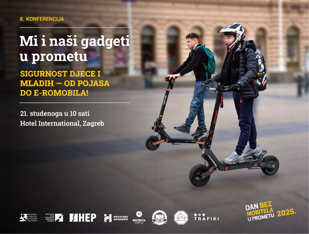 U okviru nacionalne kampanje „Dan bez mobitela u prometu“, 21. studenoga 2025. u Zagrebu, u Hotelu International s početkom u 10 sati, Hrvatska udruga menadžera sigurnosti (HUMS) organizira stručnu konferenciju „Mi i naši gadgeti u prometu“, posvećenu temi sigurnosti djece i mladih u prometu – od pojasa do e-romobila.